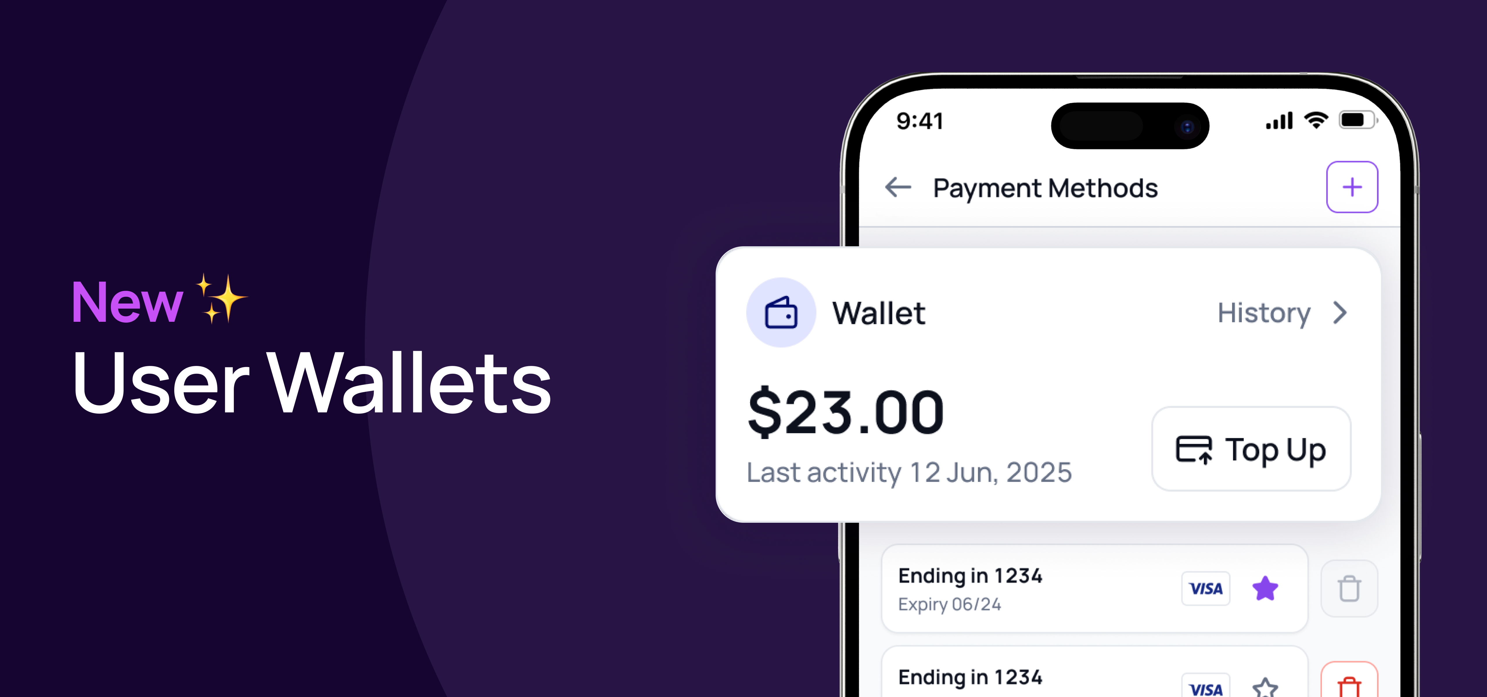 Users will now see their Wallet balance, along with a βTop Upβ button from the payment method section in their profile. Staff can find them in the same location.