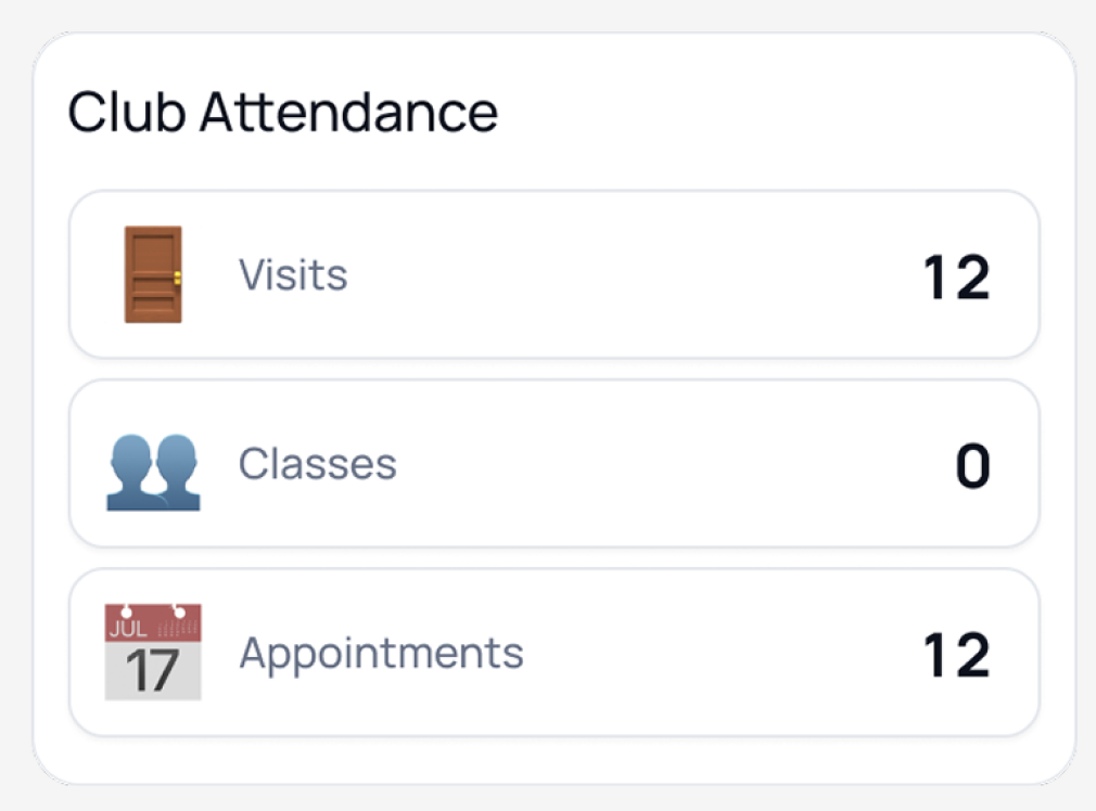 Keep your members motivated! Show the number of attended classes, appointments, or gym visits right on the Homepage so they can easily track their progress.