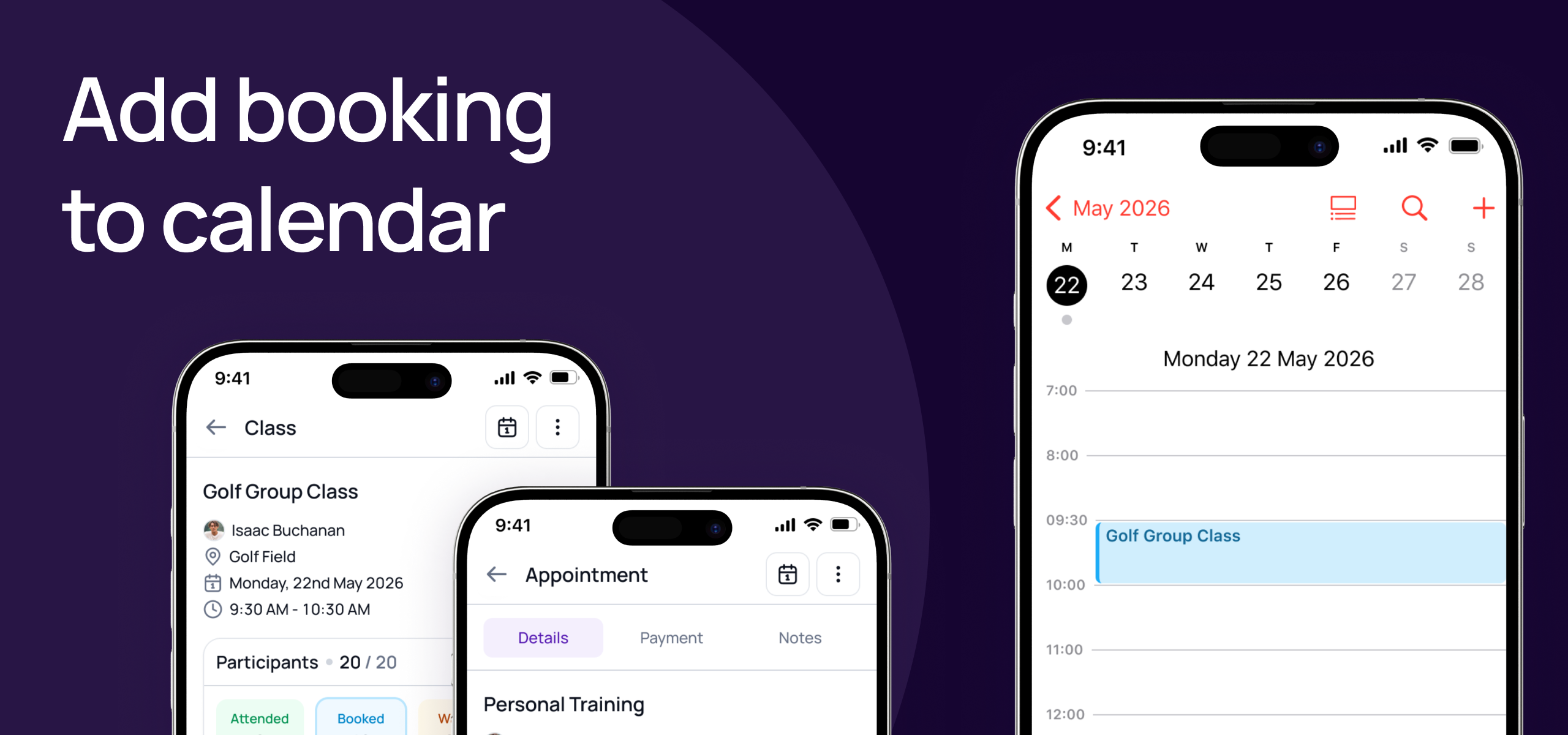 Staff can now add bookings and appointments directly to their personal calendar from the staff app β keeping their schedule in sync and reducing missed sessions.