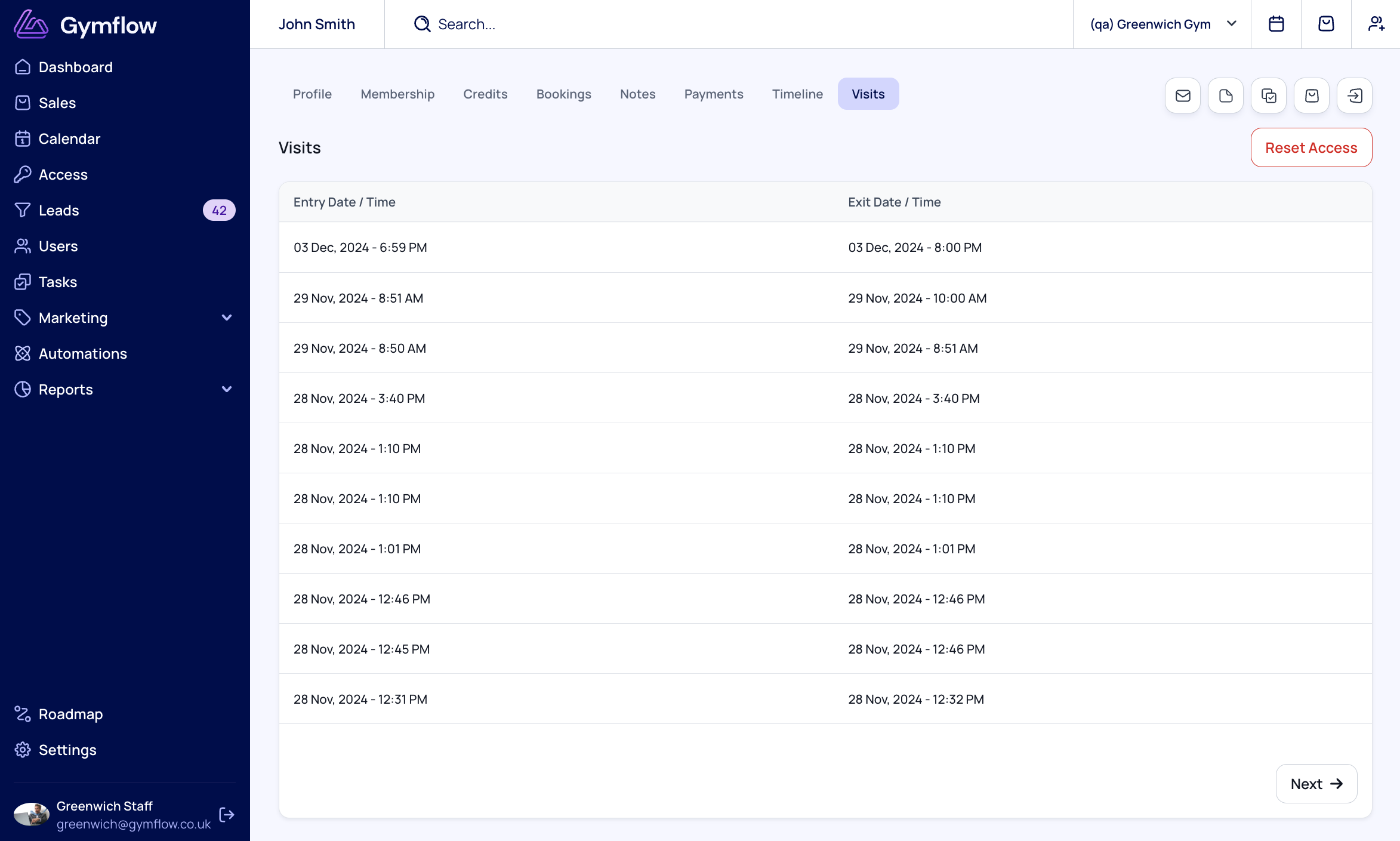 You can now track individual users visit directly from their profile, simply head to any users profile and click on the Visits tab to view historic visits.