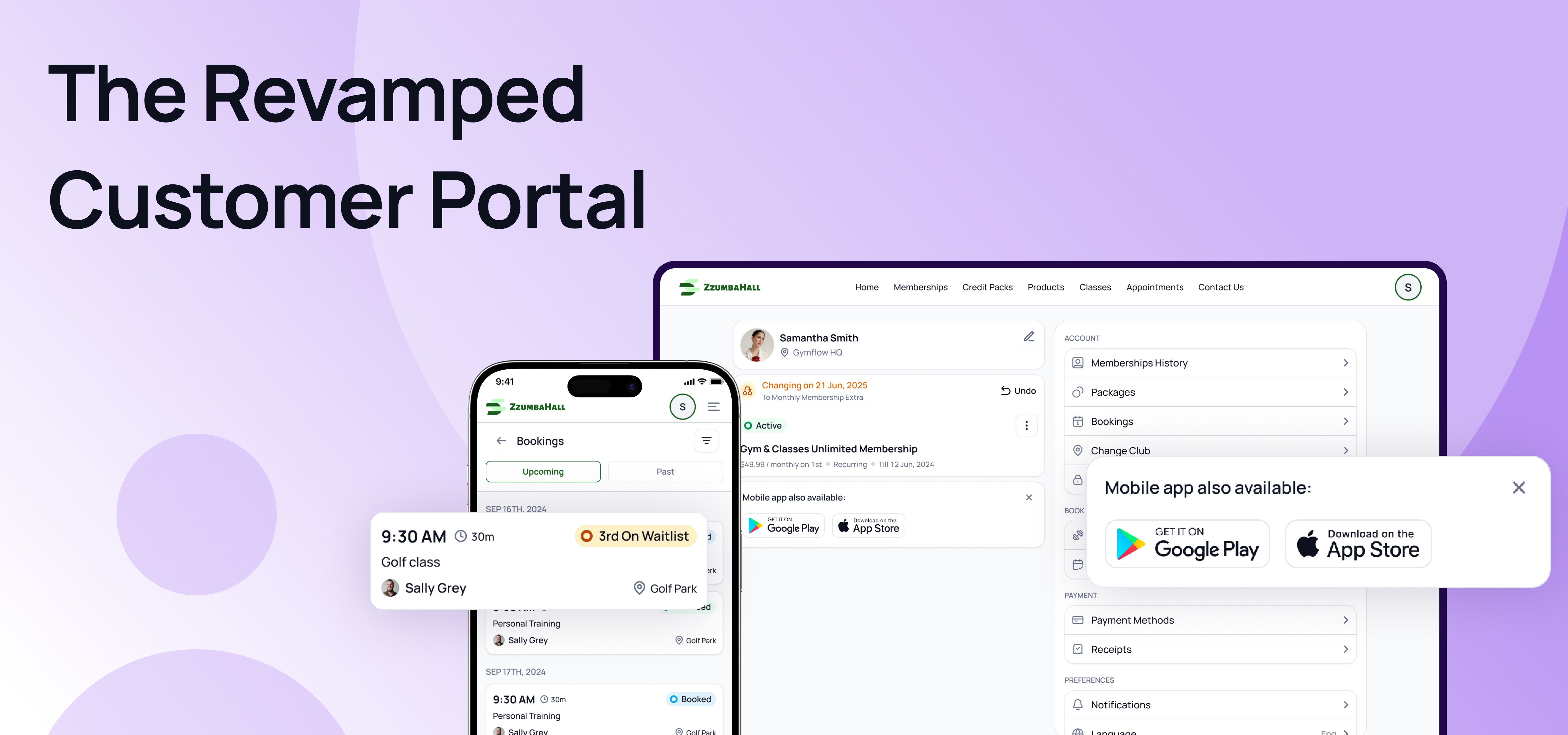 The portal now reflects your branding, making it feel like a seamless extension of your business. Additionally, if your club has a branded app, the links on the Customer Portal will direct customers to download your branded app — not the Gymflow one.