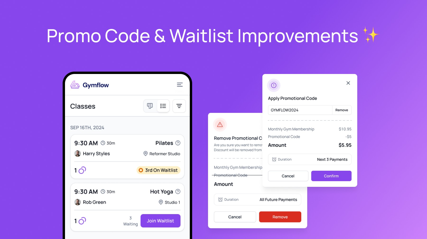 Add/Remove Promo Codes: If the user forgot to use a promo code or perhaps the wrong code was applied, or any other reason. You can now add or remove a promotional code to a membership at any active or pending membership.